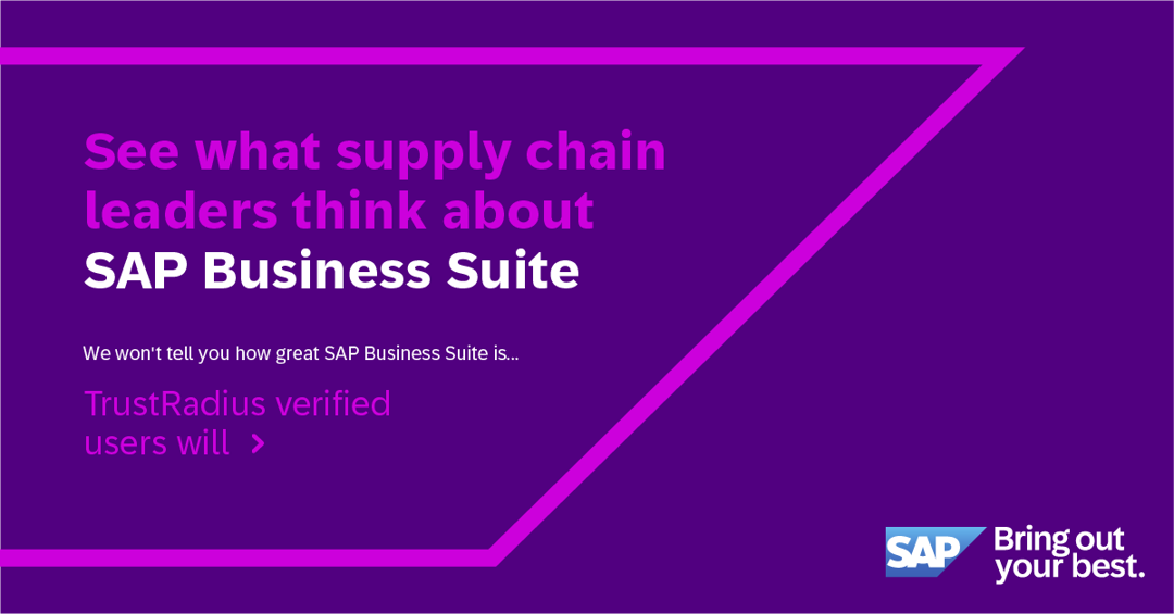 This TrustRadius report, "Supply Chain Management with SAP Business Suite", focuses on verified user experiences with SAP S/4HANA Cloud, the AI-driven ERP solution at the heart of SAP Business Suite.